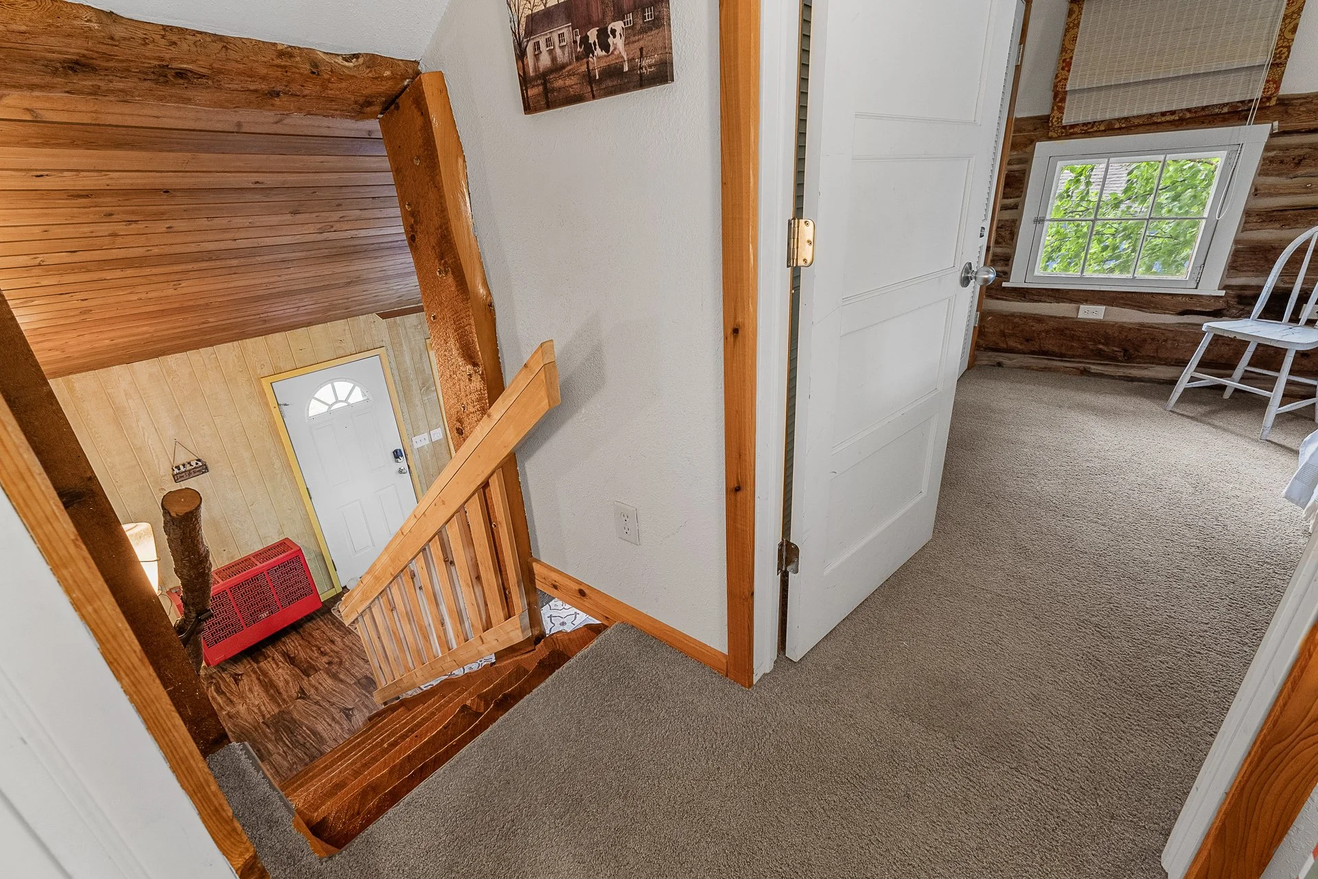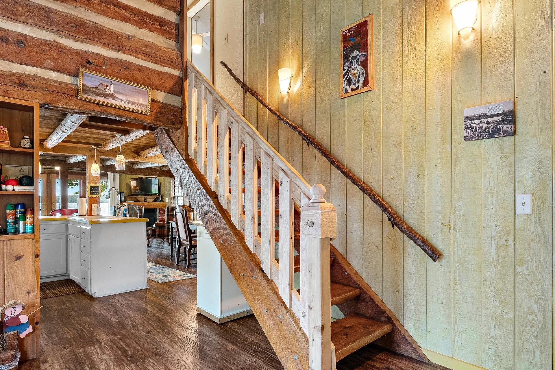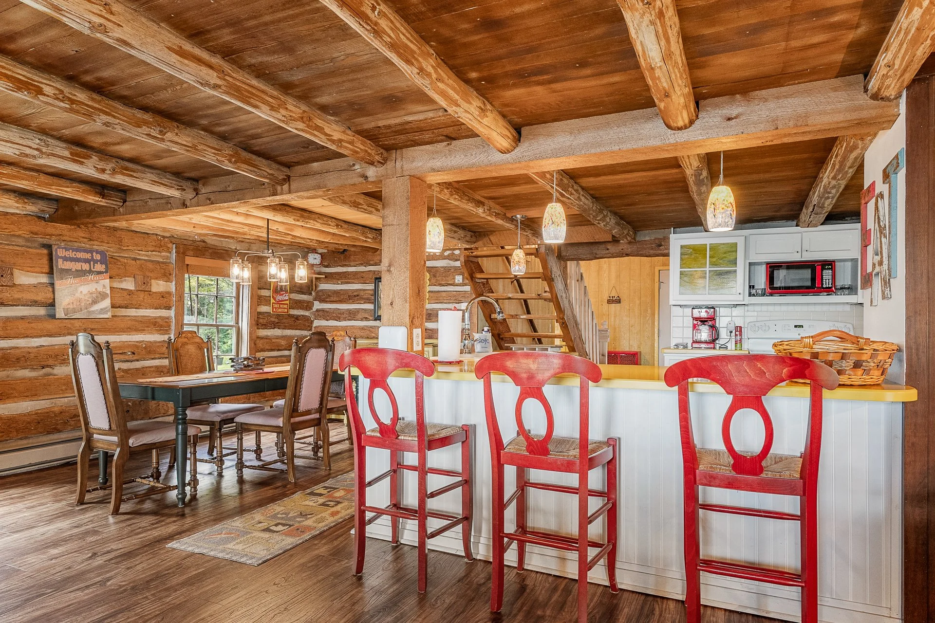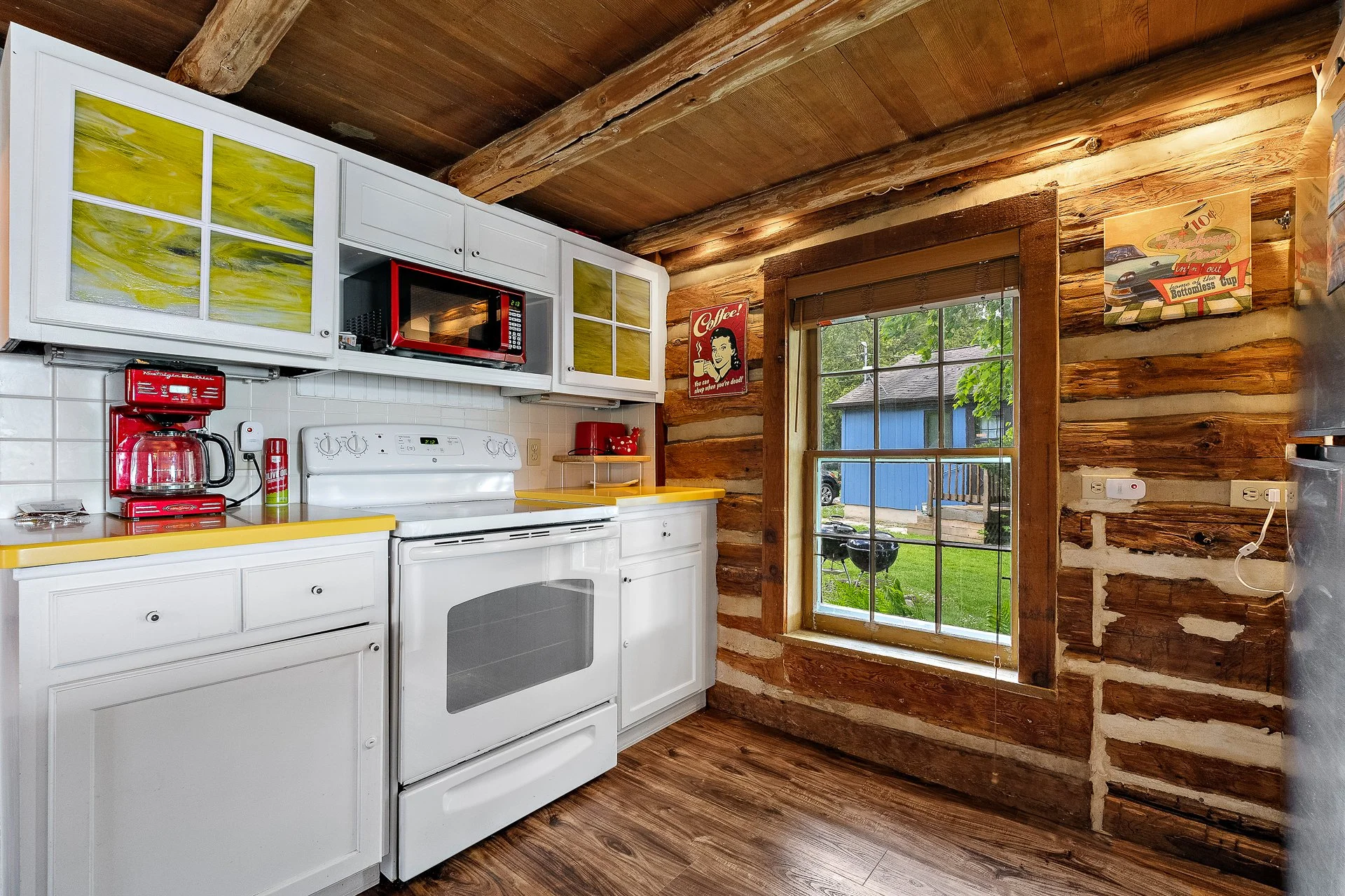 The Kabin is equipped with a dishwasher, microwave, electric smooth top range, toaster, coffee maker and a fully equipped kitchen. It also has laundry available with a stacking washer/dryer at the front of the cottage. The main living area has a gas-powered electric switch fireplace.
